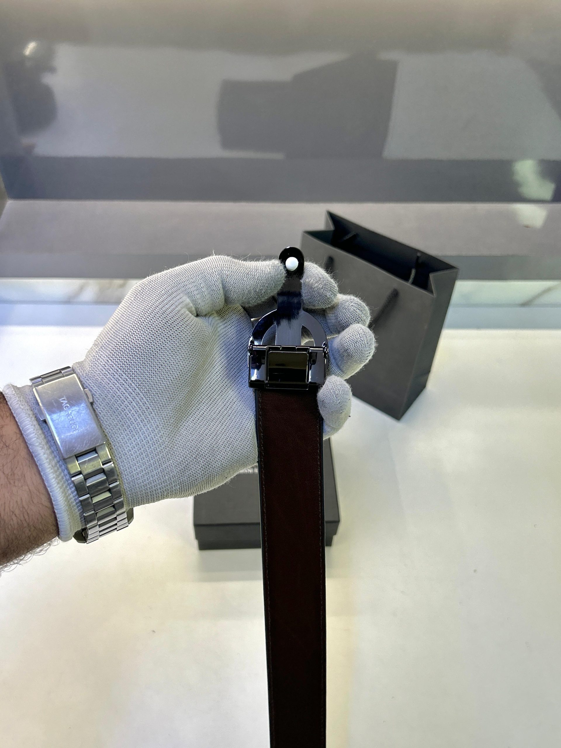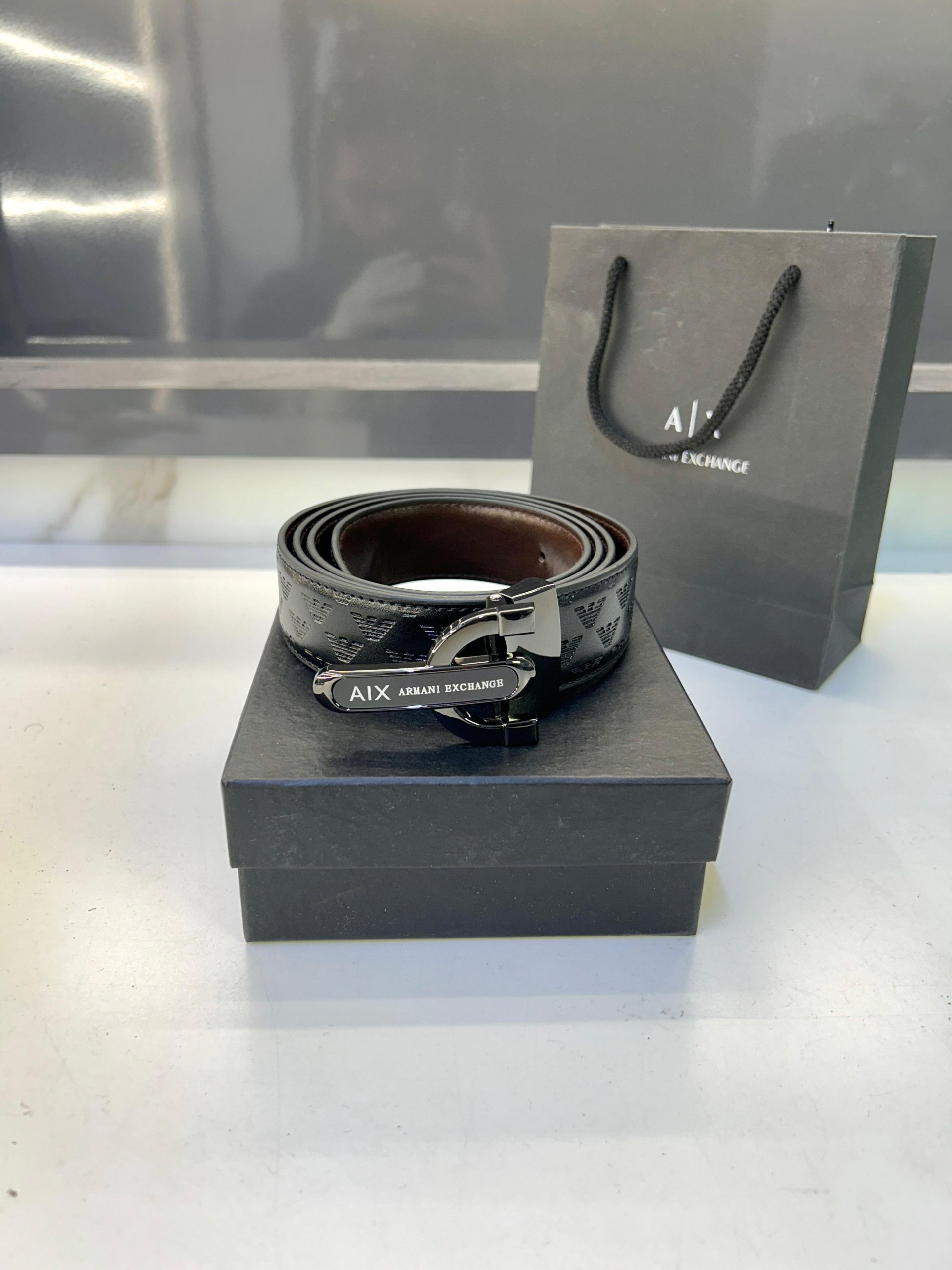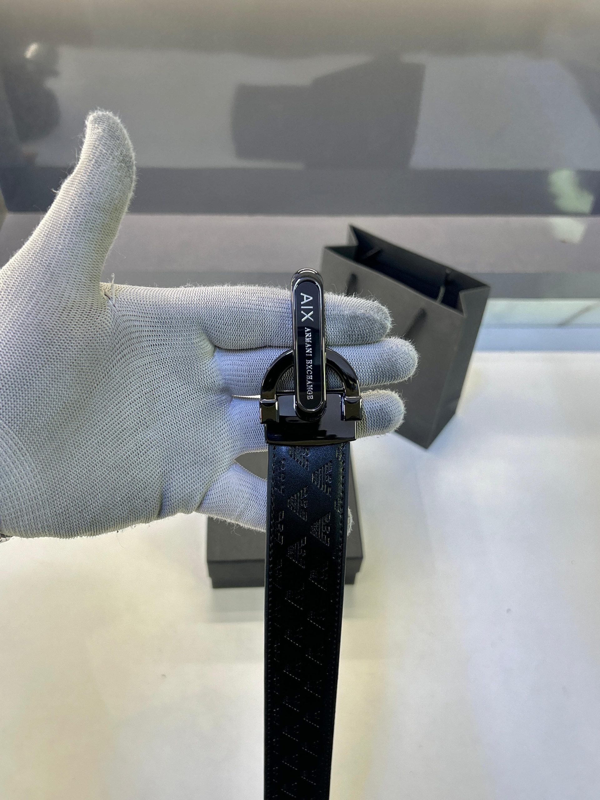 Armanis Exchanges Glossy Black Belt