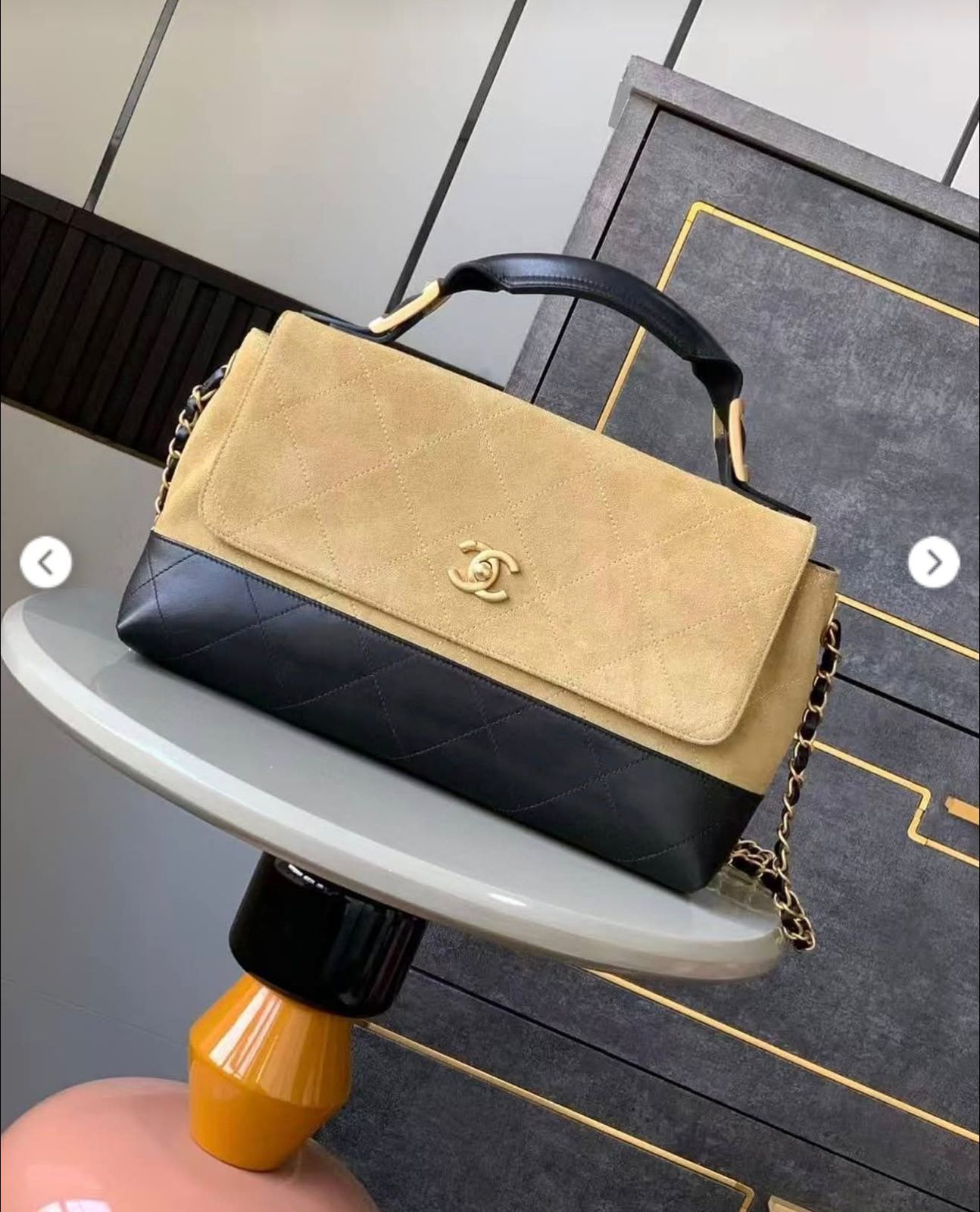 CHANELE BROWN SUEDE FLAP & BLACK QUILTED LETAHER WITH PREMIUM BOX & CARRY BAG
