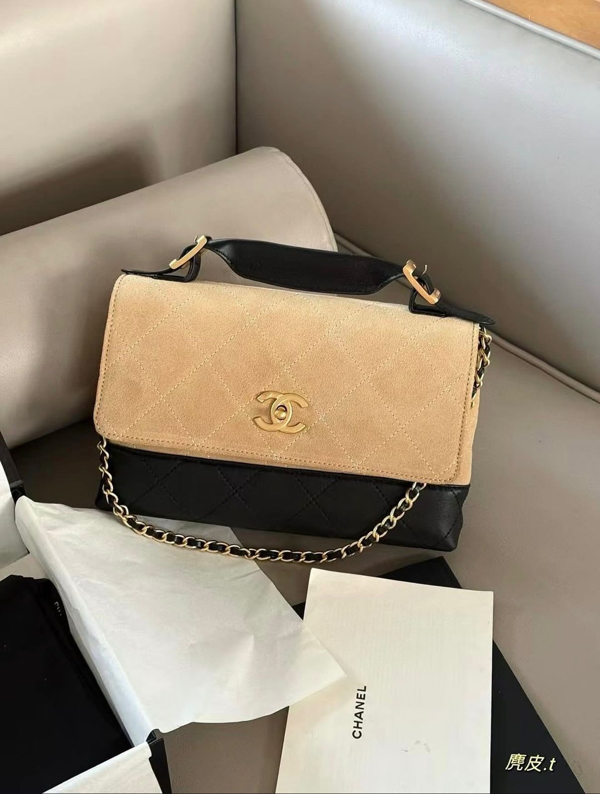 & Free ShippingCHANELE BROWN SUEDE FLAP & BLACK QUILTED LETAHER WITH PREMIUM BOX & CARRY BAG