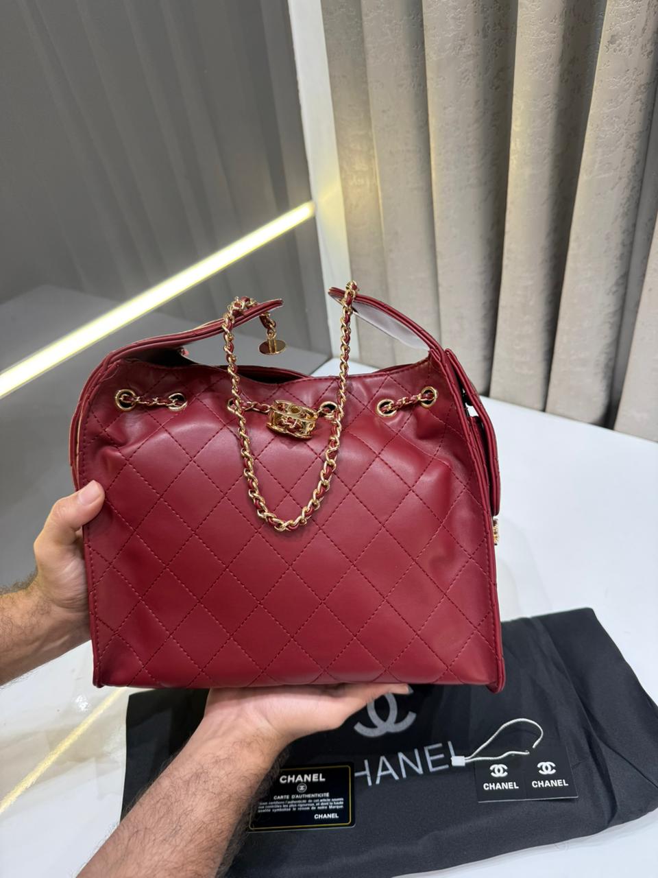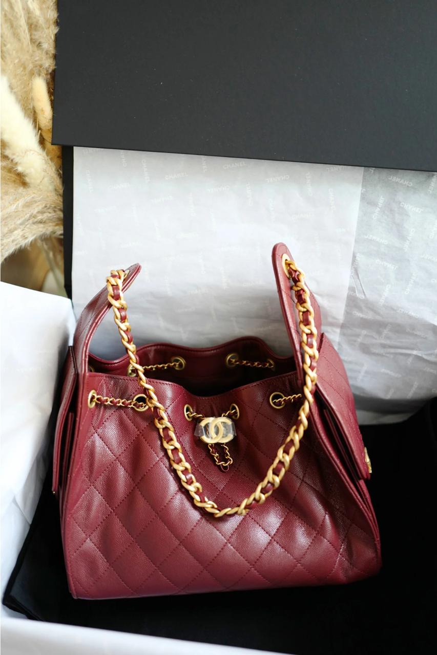 CHANELE SMALL 25 HOBO HAND BAG BURGUNDY RED LEATHER PREMIUM WITH DUST BAG??????