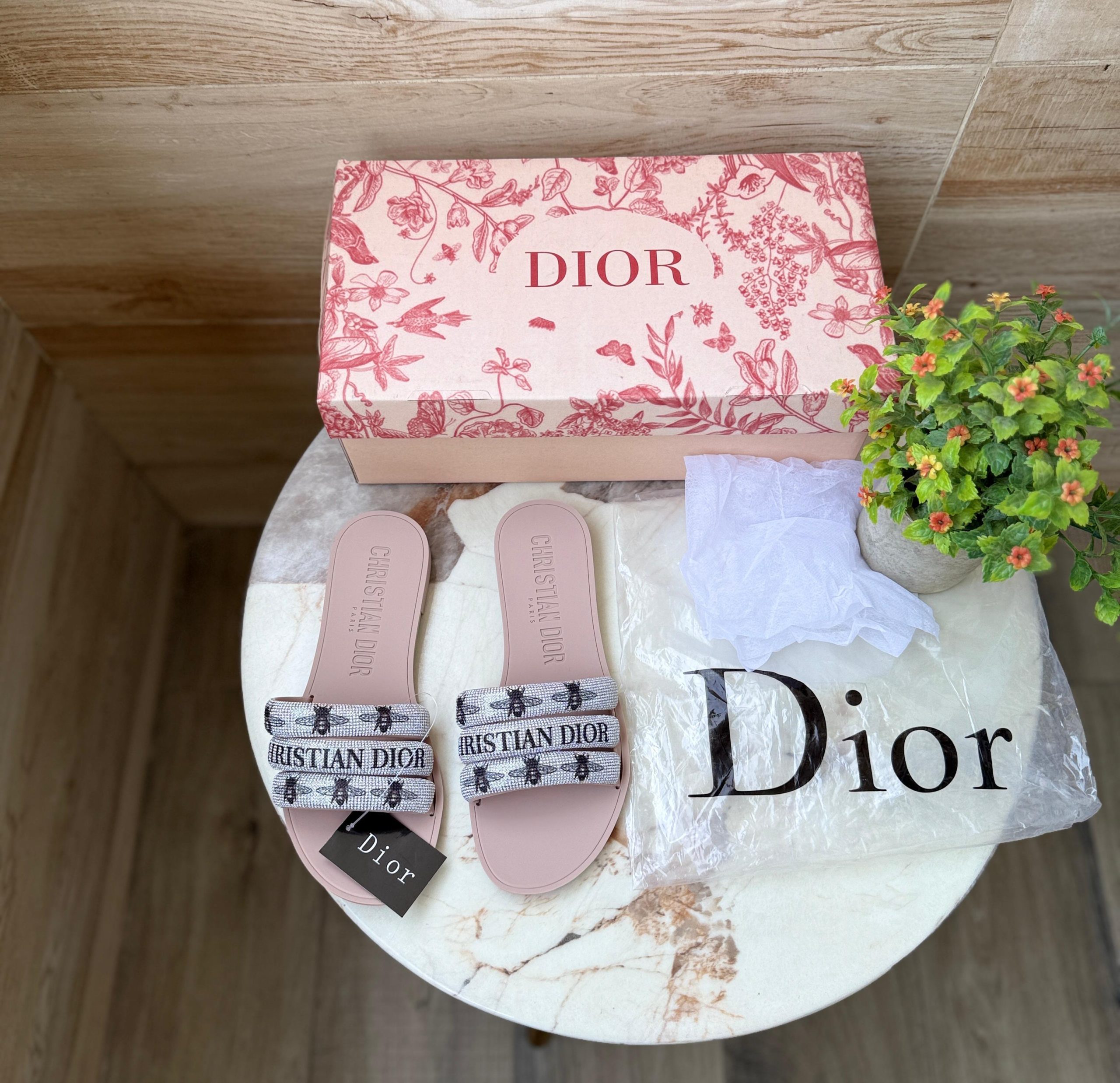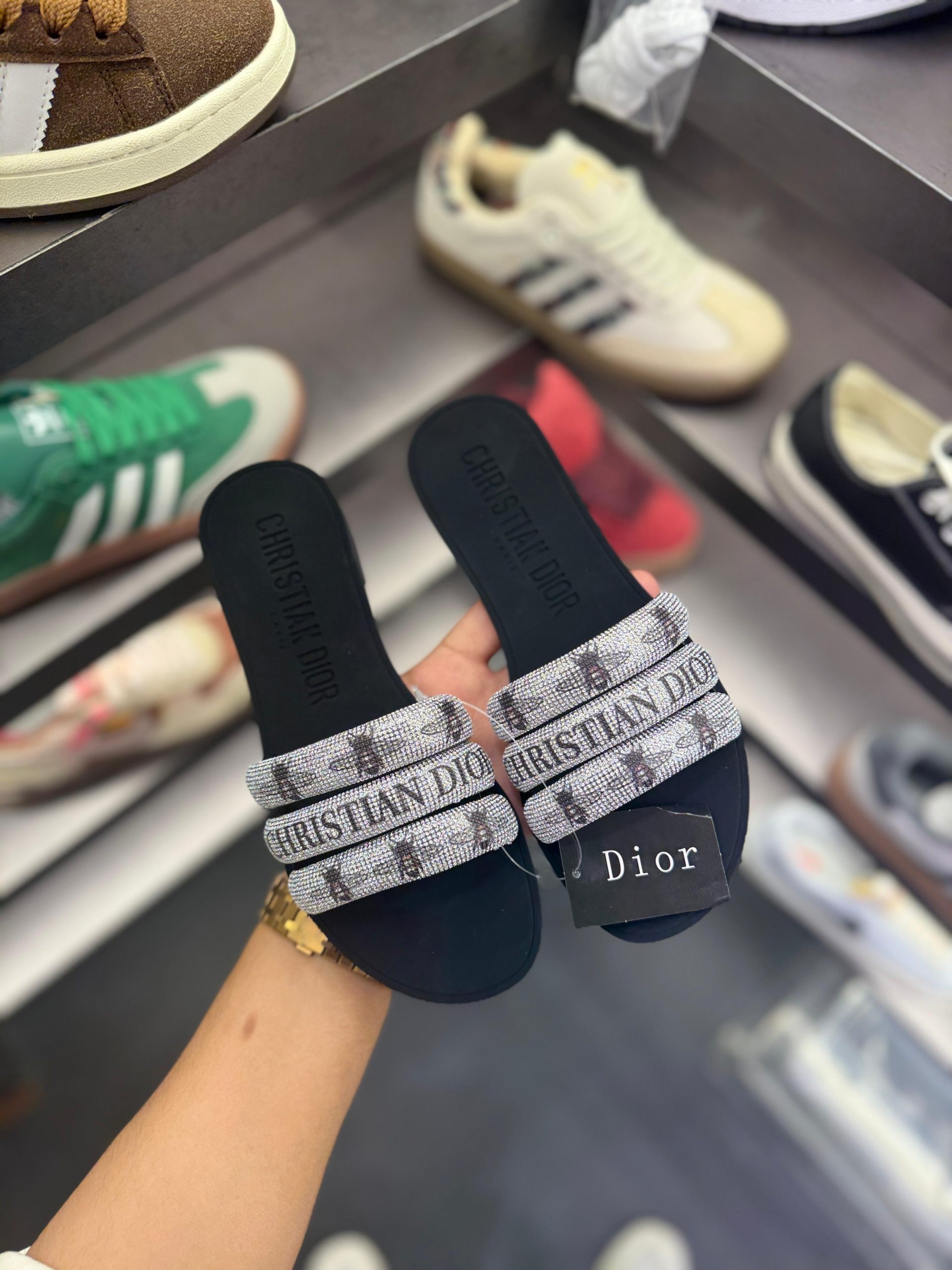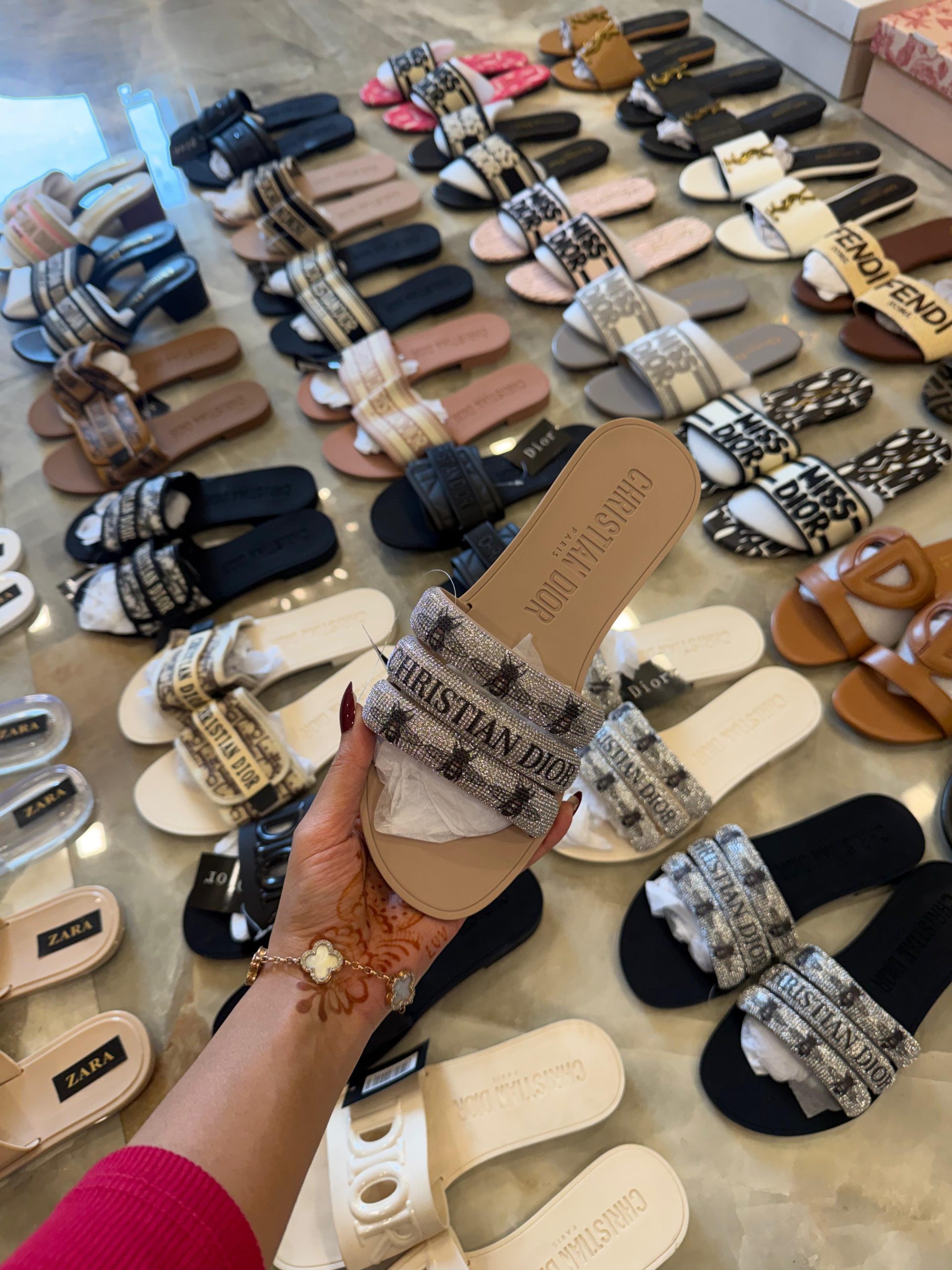 CHRISTIAEN DIORE BEE STUDDED FLATS – BLACK, WHITE AND BEIGE