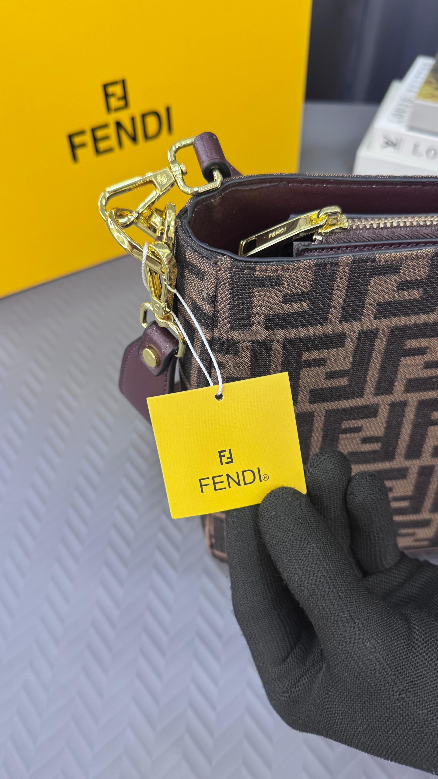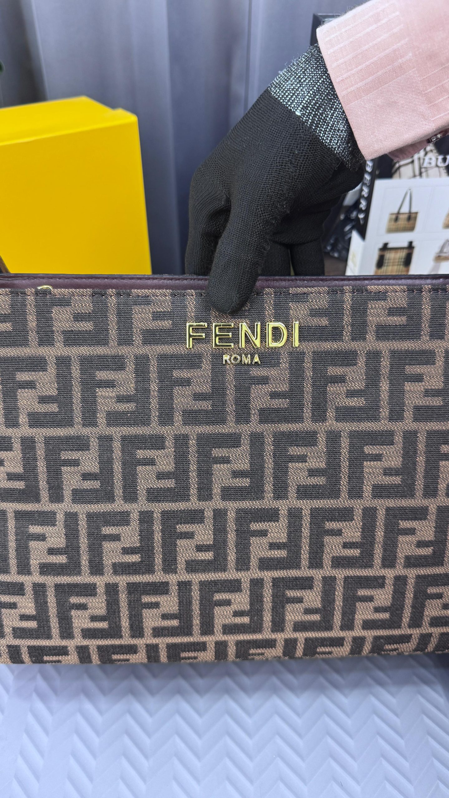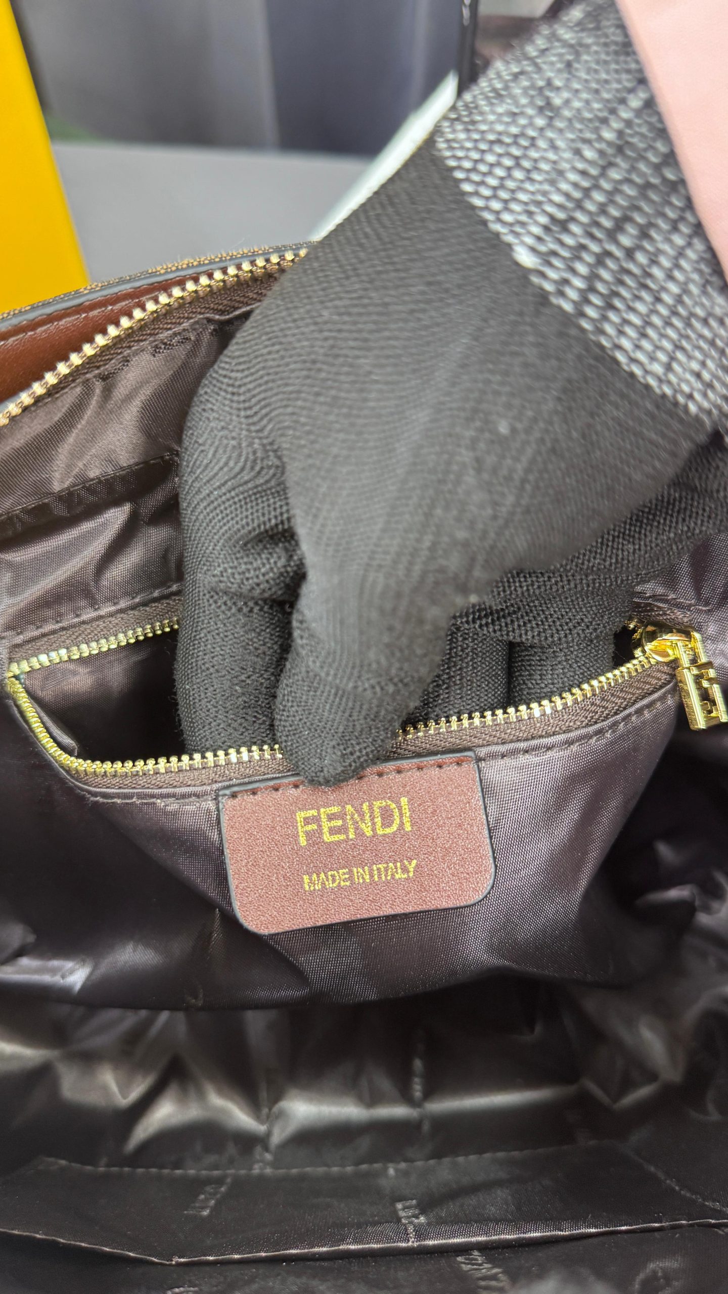& Free ShippingFENDIE O LOCK SWING ZUCCA WITH CHENILLE GOLD TONE HARDWARE HAND BAG