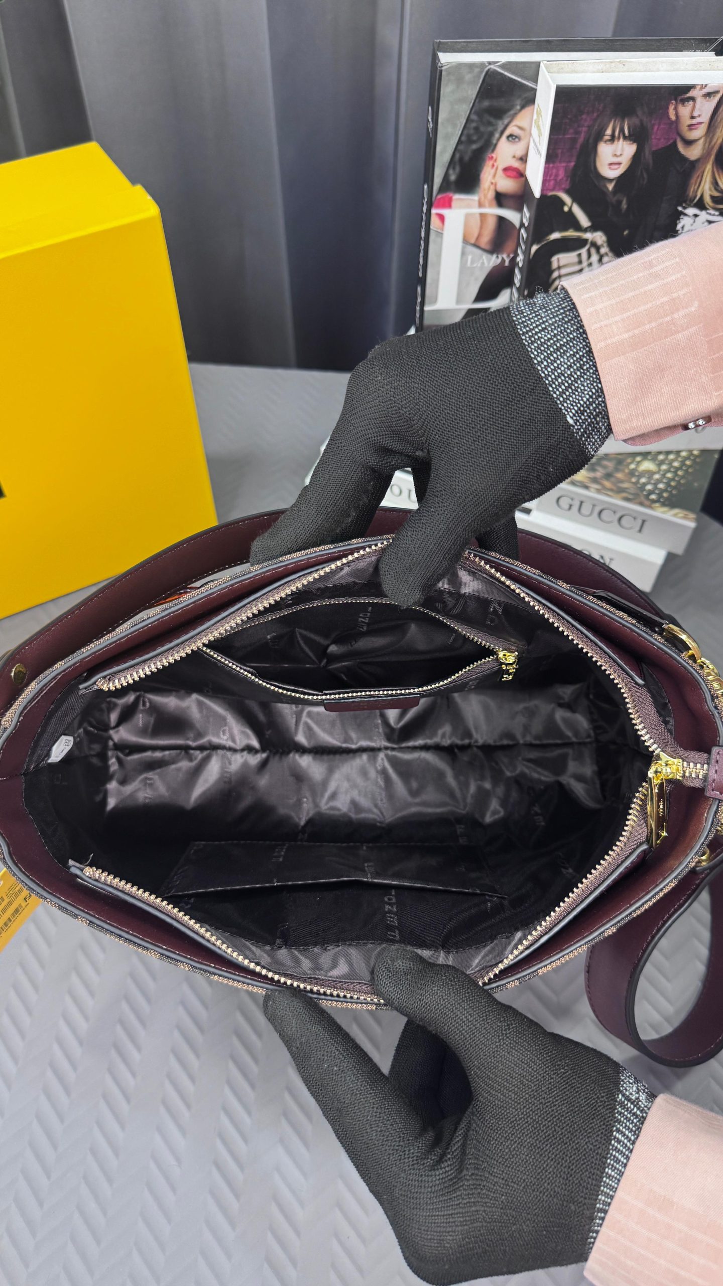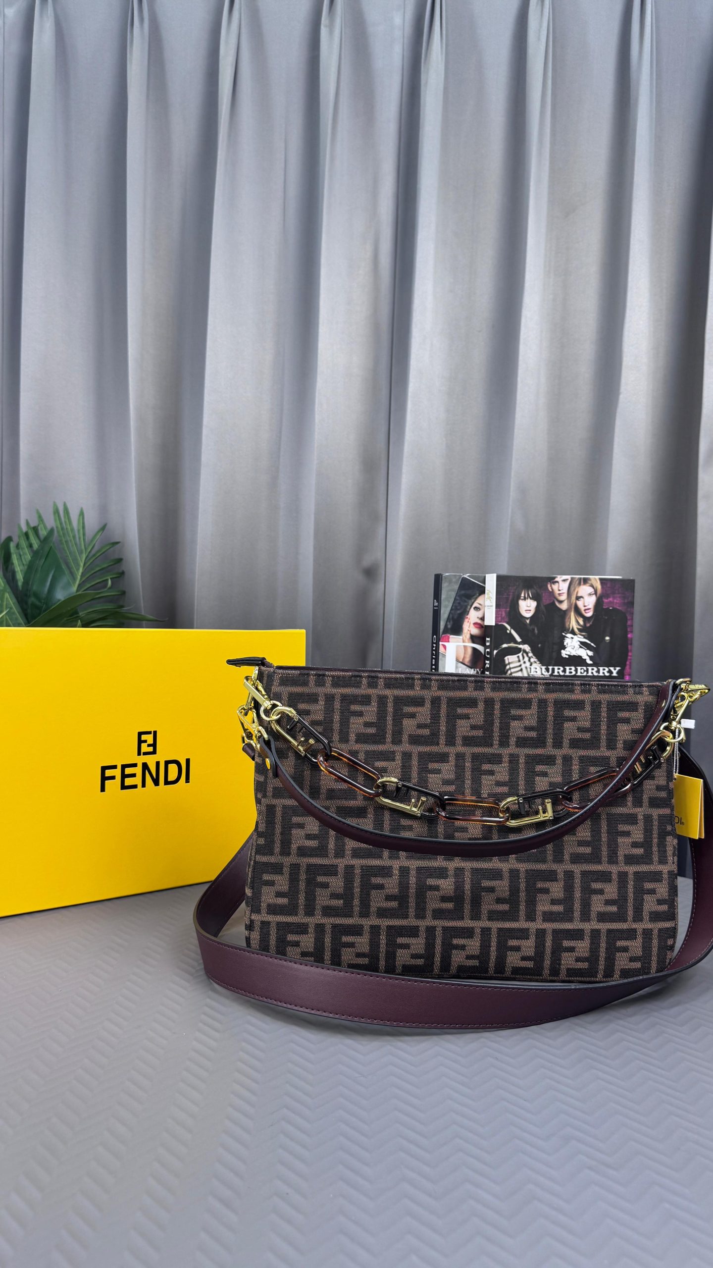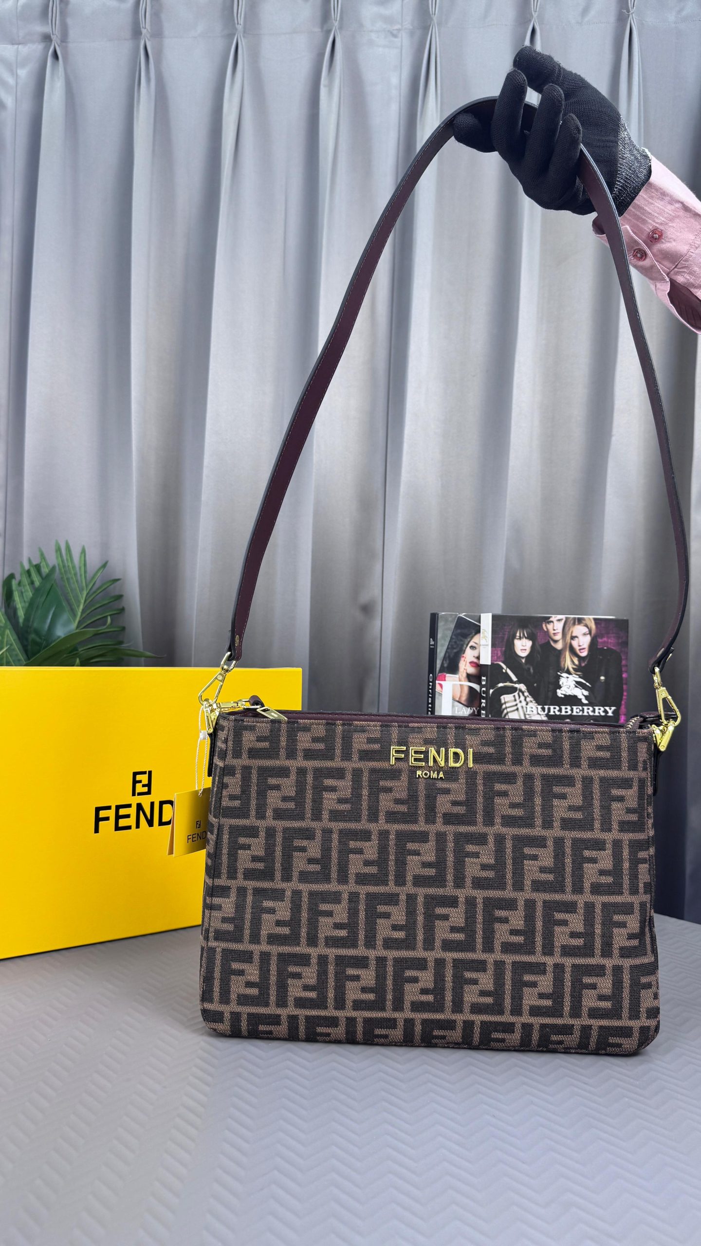 & Free ShippingFENDIE O LOCK SWING ZUCCA WITH CHENILLE GOLD TONE HARDWARE HAND BAG