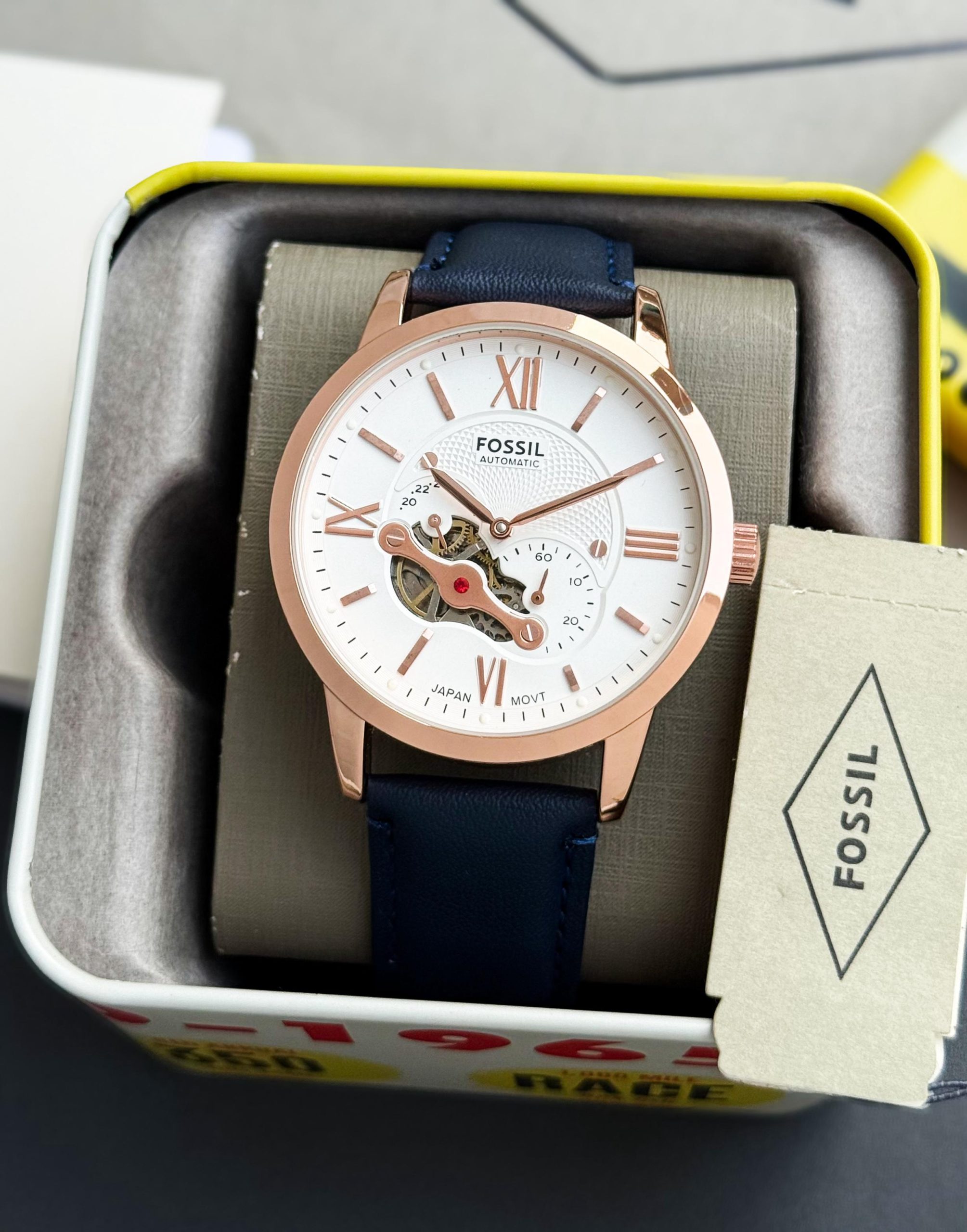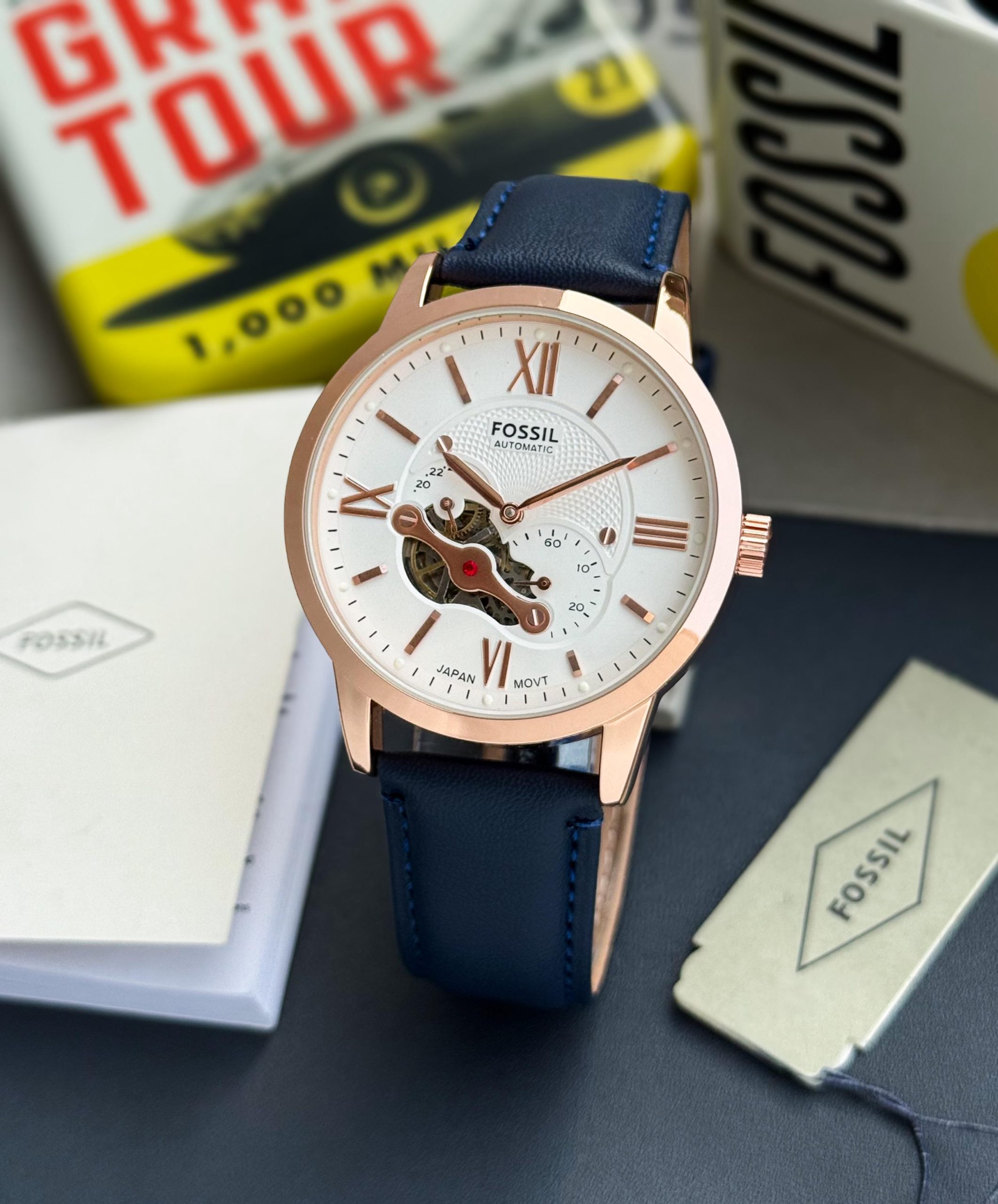 -Blue leather strap