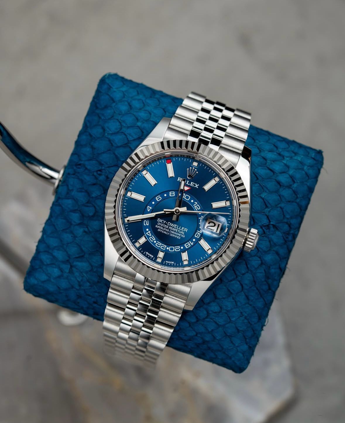 -Blue dial with silver chain