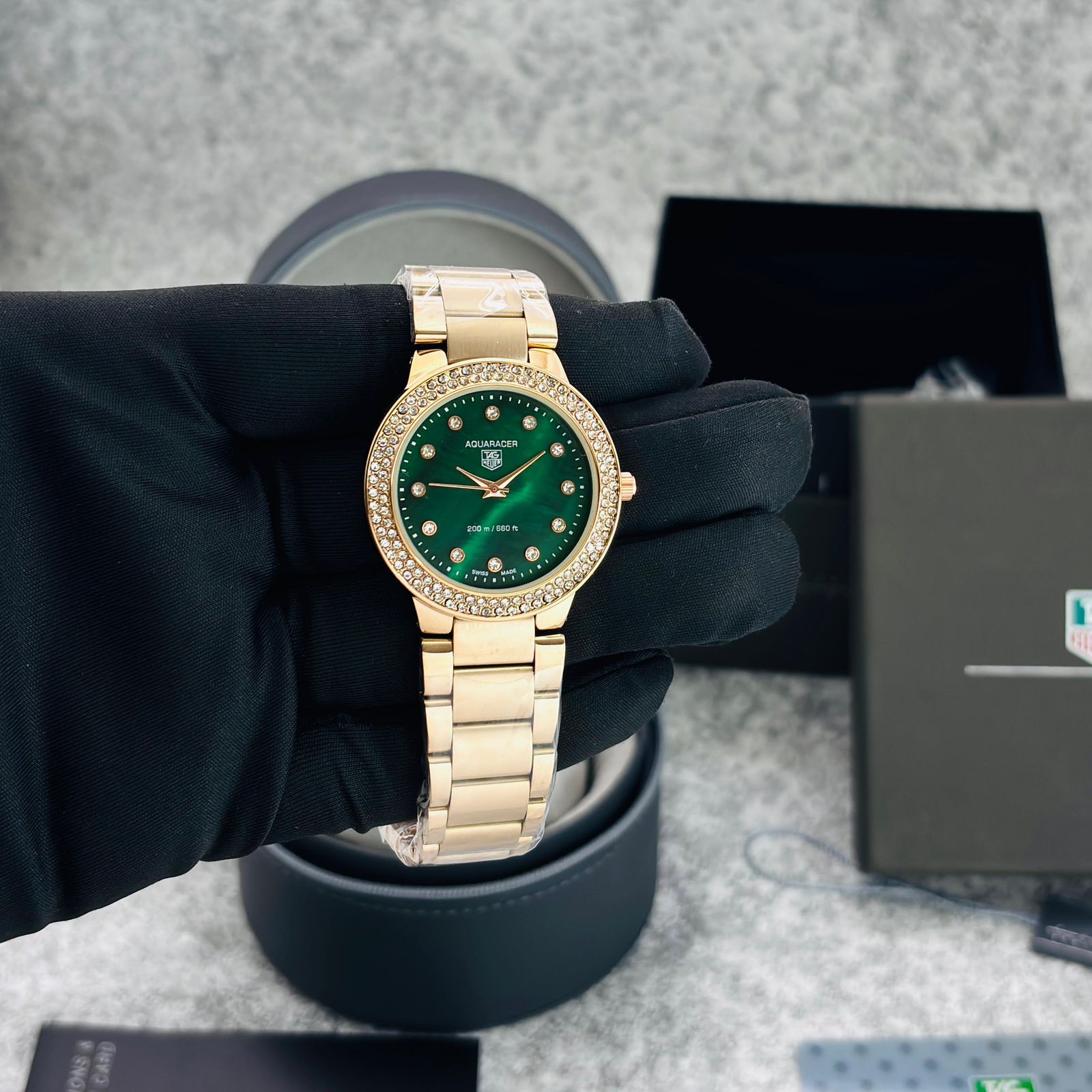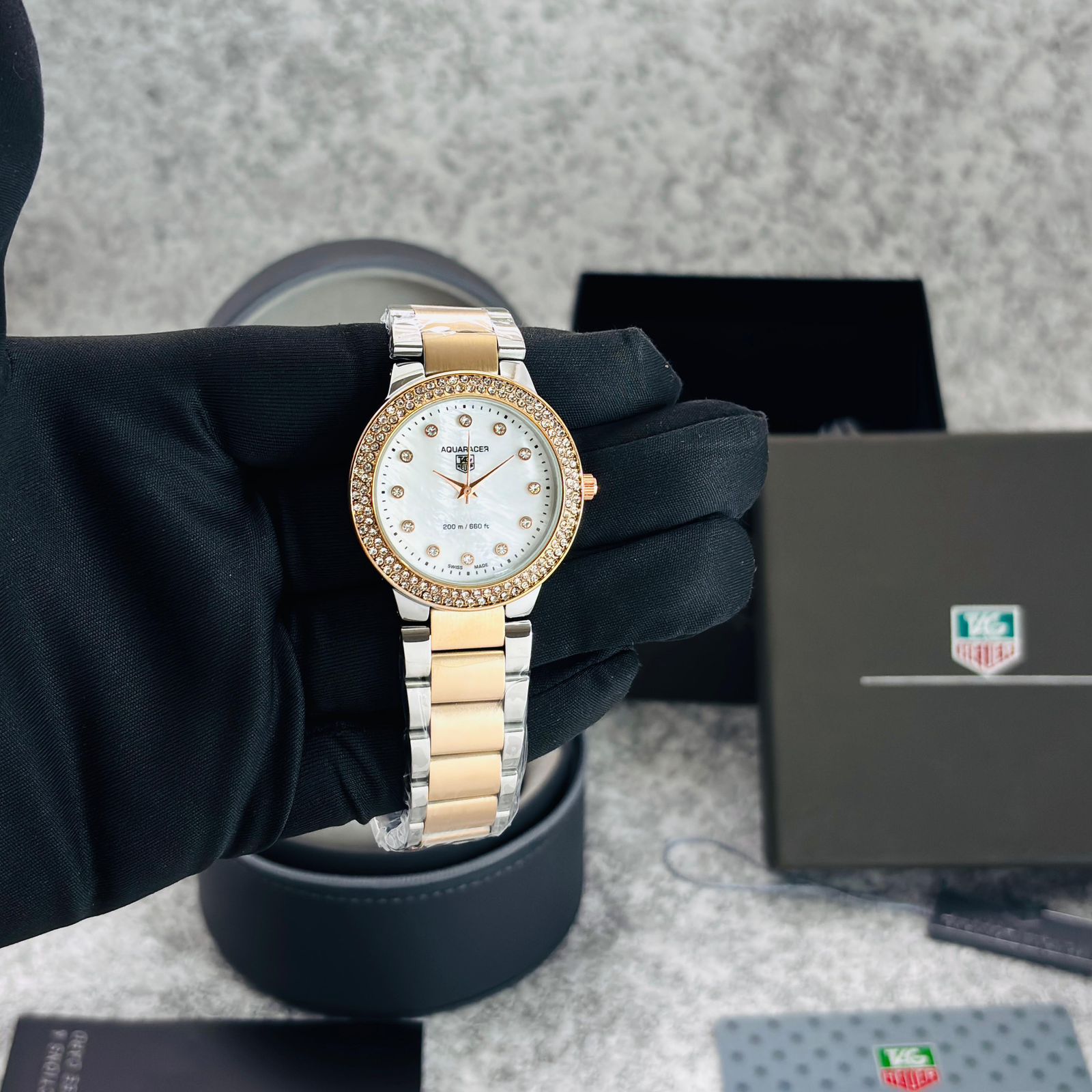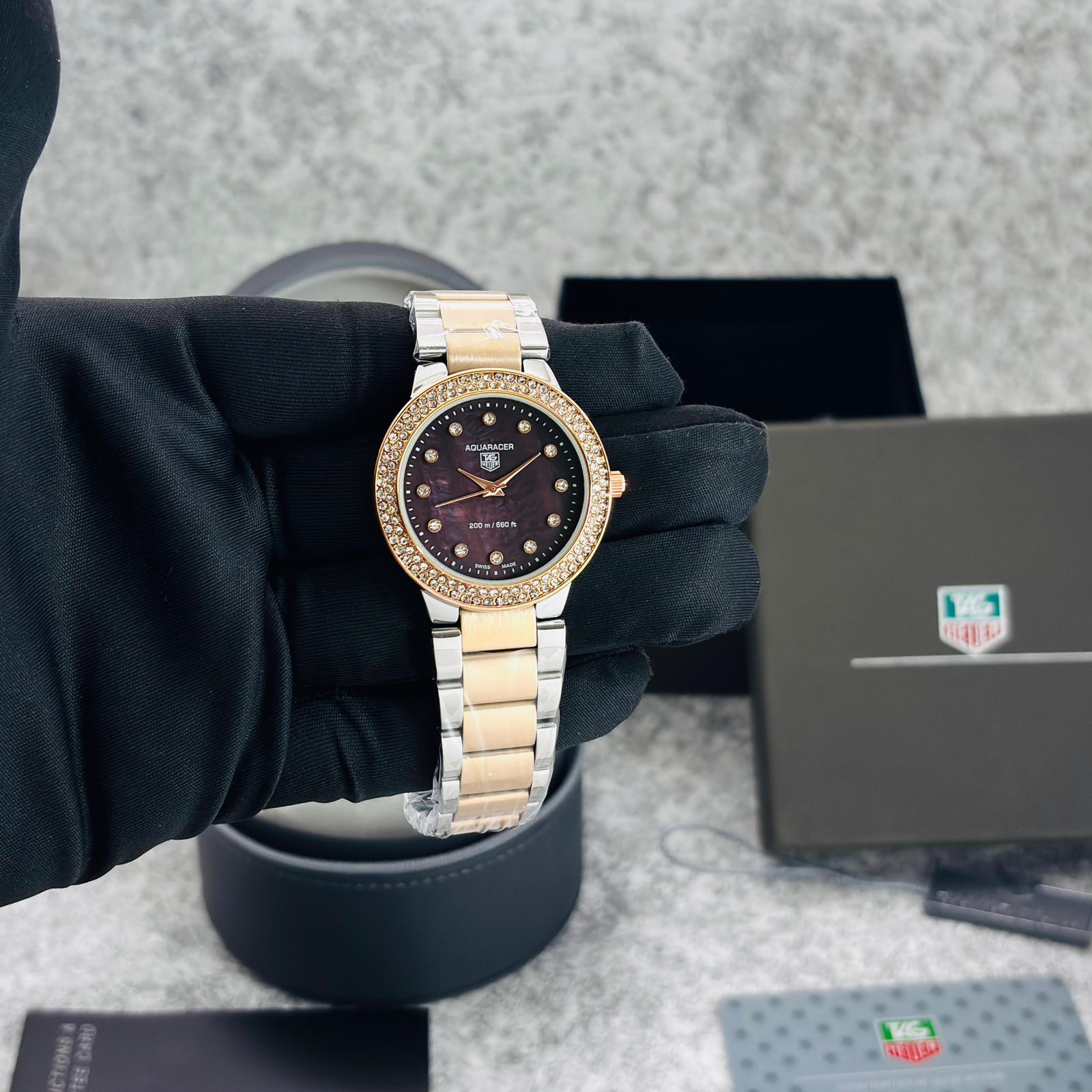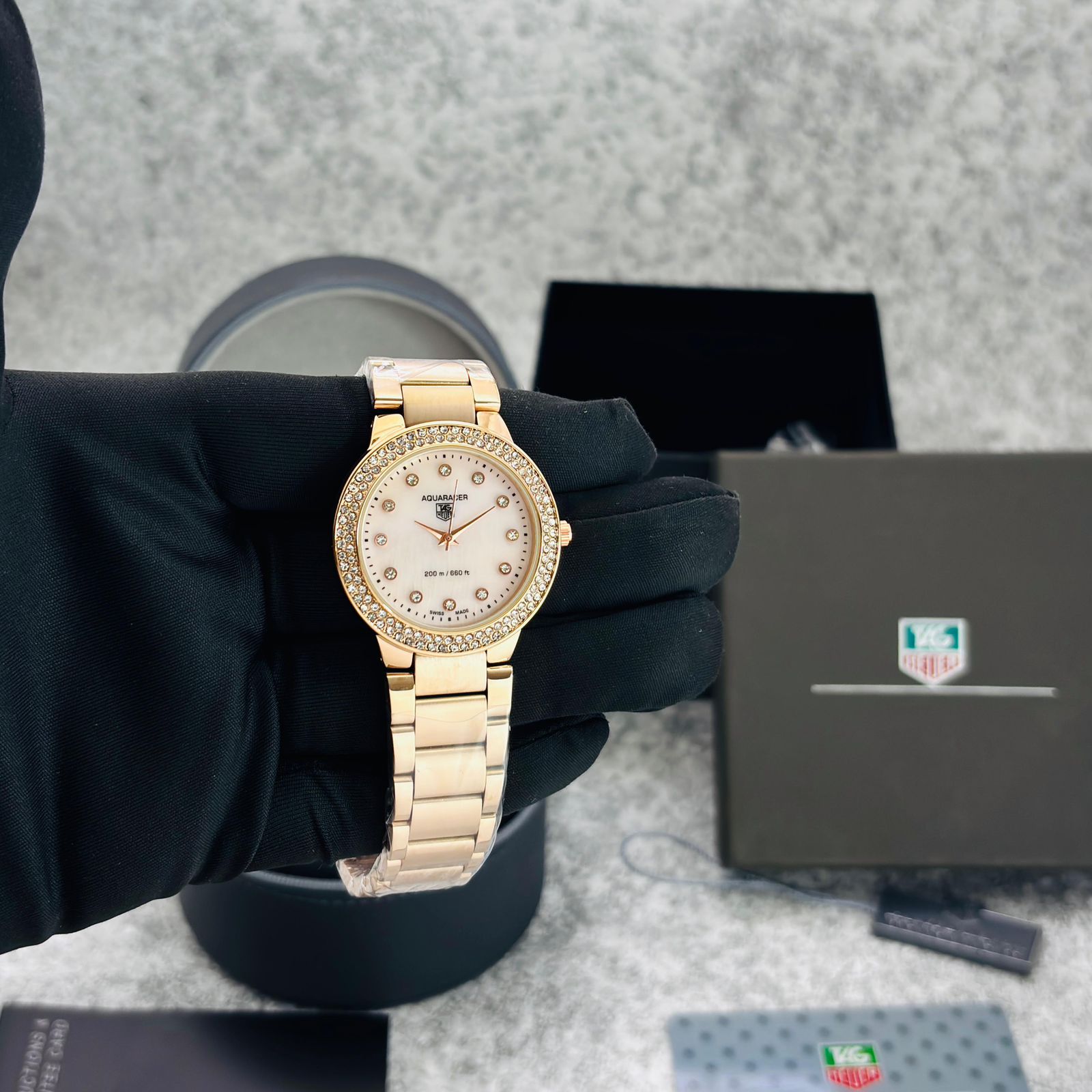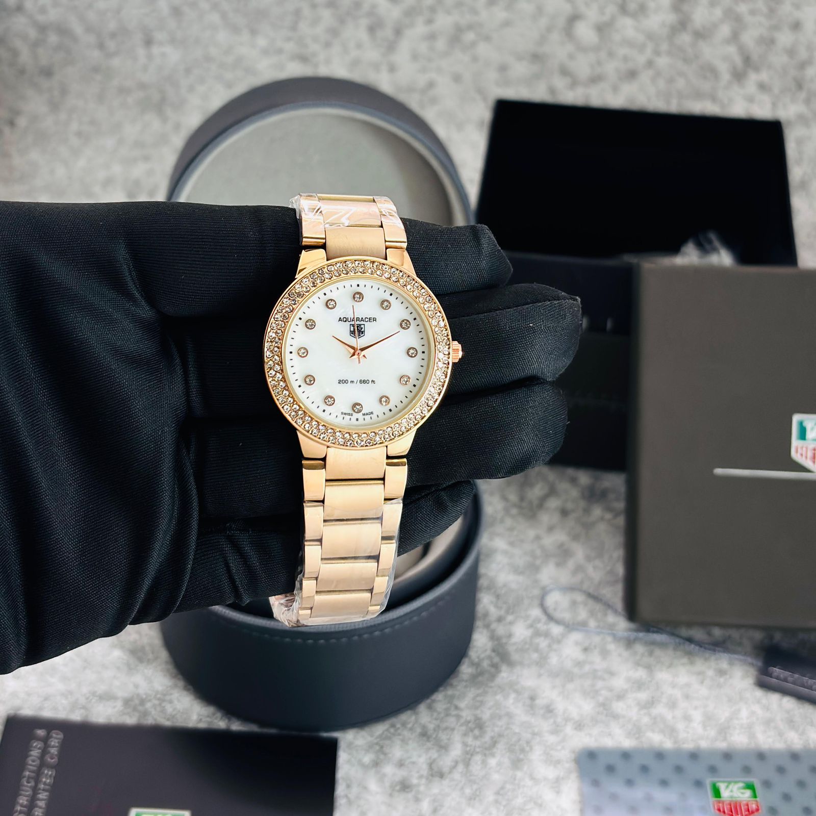 # Feature-MOP Dial, Matt metal chain full RoseGold Piece ,Rose dial, micro second movement, gorgeous machine looks & High end stop watch quartz operated machinery