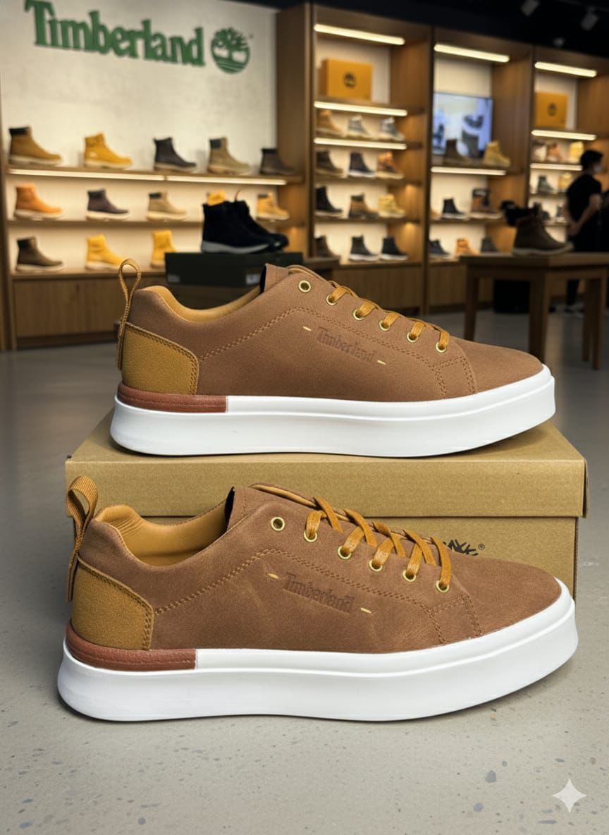TIMBERLANDD TAN WHITE LOW LEATHER SNEAKER