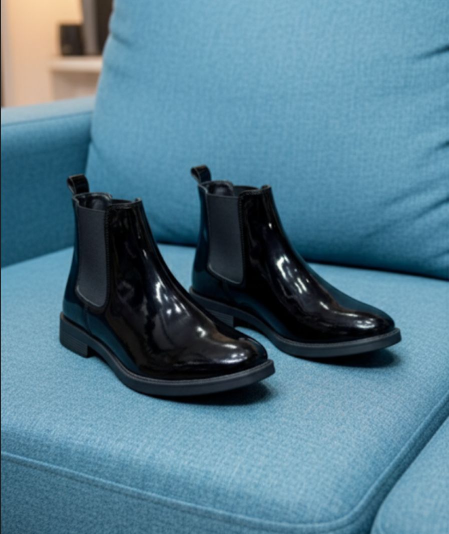 Zaraa chelsea patent wrinkle free boots